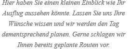 • 9 Uhr Abfahrt an Ihrer Unterkunft
